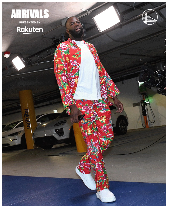 大通中心的“东方时尚风暴” 追梦的“东北大花”为何刷屏? 旧金山大通中心。当勇士队前锋德雷蒙德·格林(Draymond Green)穿着一身东北大花袄风格的定制球衣走进球场时,现场18000名观众的