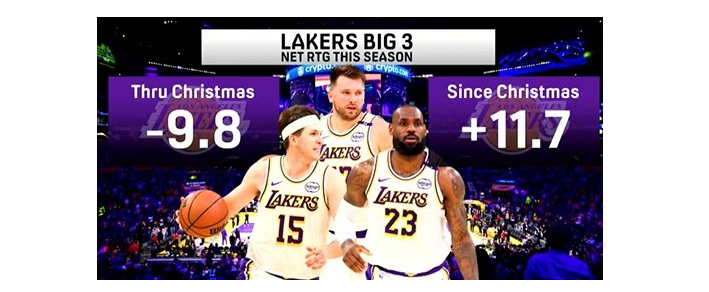 洛杉矶的“圣诞拐点” 湖人三巨头的“正负逆转”之谜 洛杉矶湖人队的战术分析室内,数据分析师艾伦·史密斯(Alan Smith)指着屏幕上的折线图,向主帅达尔文·哈姆(Darwin Ham)汇报:“自